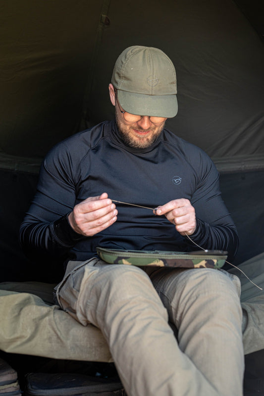 Regular price £24.99Regular priceUnit price / per£24.99Sale price £24.99S M L XL XXL XXXL XXXXLBase layers are often the unsung heroes of winter warmth and this Mock Neck Thermal Long Sleeve Shirt delivers exceptional warmth when it matters most. Created from premium quick-dry brushed jersey fabric, this essential piece expertly regulates body temperature in the most demanding conditions. The brushed jersey construction provides optimal heat retention while remaining remarkably breathable. Furthermore, the fitted nature of this base layer eliminates bulk while maximizing thermal efficiency. The high neckline creates an effective barrier against cold drafts and the back will not ride up when casting or baiting up. Integrated thumb holes keep sleeves securely positioned and provide additional coverage for your hands. This feature proves invaluable when layering under hoodies, fleeces or jackets, ensuring the sleeves do not ride up. The Mock Neck Thermal Shirt is available in both dark olive and black in UK outlets. In European retailers only the dark olive version is available. Both come in comprehensive sizing from Small to 4XL to accommodate every body shape. *The materials used to construct this product are: 92% polyester, 8% spandex, 225GSM.- Brushed, jersey fabric