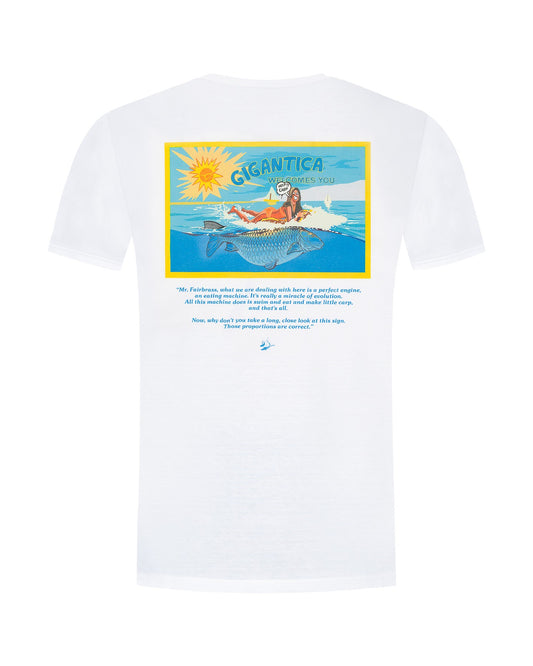Regular price £22.49Regular priceUnit price per£22.49Sale price £22.49S M L XL XXL XXXL XXXXLIn celebration of the 50th anniversary of the 1975 classic flick, starring a rather large shark, we've created our own designs that pay homage to this iconic film while adding our own creative Korda twist. The Gigantica Jaws Tee plays on the huge carp that reside in the renowned big fish water in France. Taking inspiration from the classic 70s artwork – GIGANTICA WELCOME YOU! The summery graphic is a throwback to one of the classic scenes from the film, where a distressed sunbather has an encounter with a gigantic fish; in this case a huge common carp! With classic quotes adapted to Gigantica and bright, bold graphics, this tee is set to be a summer classic. Available in white and navy blue, with sizes ranging from small to 4XL. *The materials used to construct this tee shirt are: 60% cotton, 40% polyester.- Perfect for summer